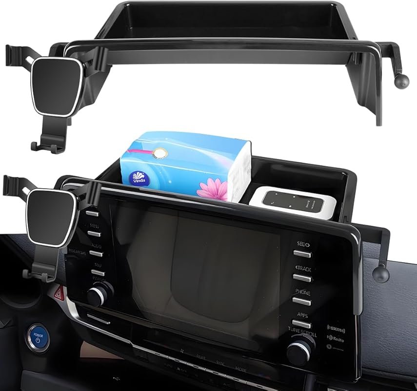 This center console phone holder is a game-changer for Sienna owners from 2021 to 2024. It seamlessly integrates into your dashboard, providing a dedicated spot for your phone without blocking the navigation screen. Plus, the added storage tray keeps small items organized and within reach.