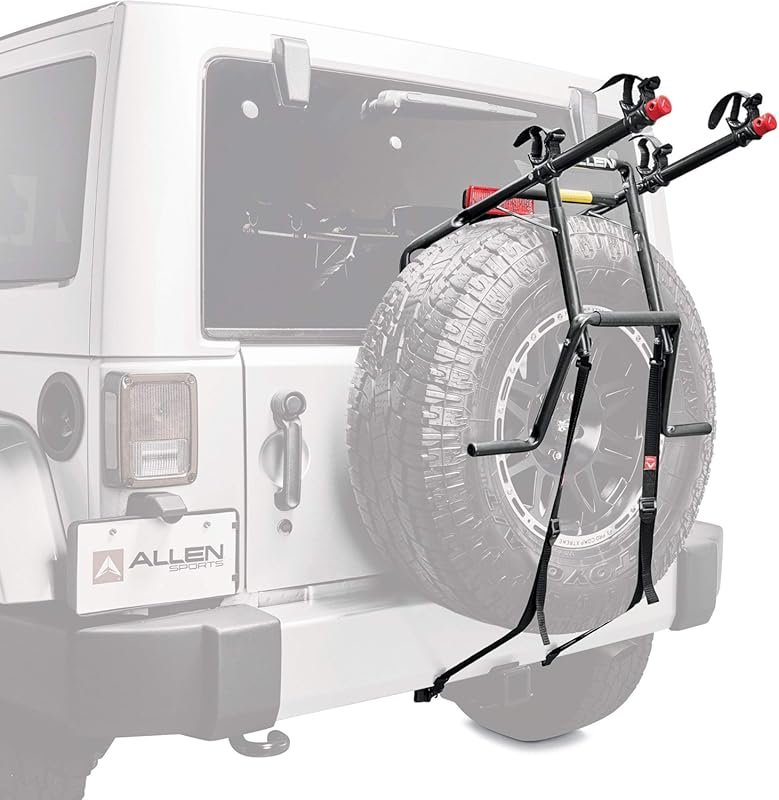 The Allen Sports Deluxe 2-Bike Spare Tire Rack provides reliable, straightforward bike transport for Jeep Wrangler owners. This classic design has proven its worth over years of use, offering a simple yet effective solution for carrying two bikes securely on spare tire mounting systems.