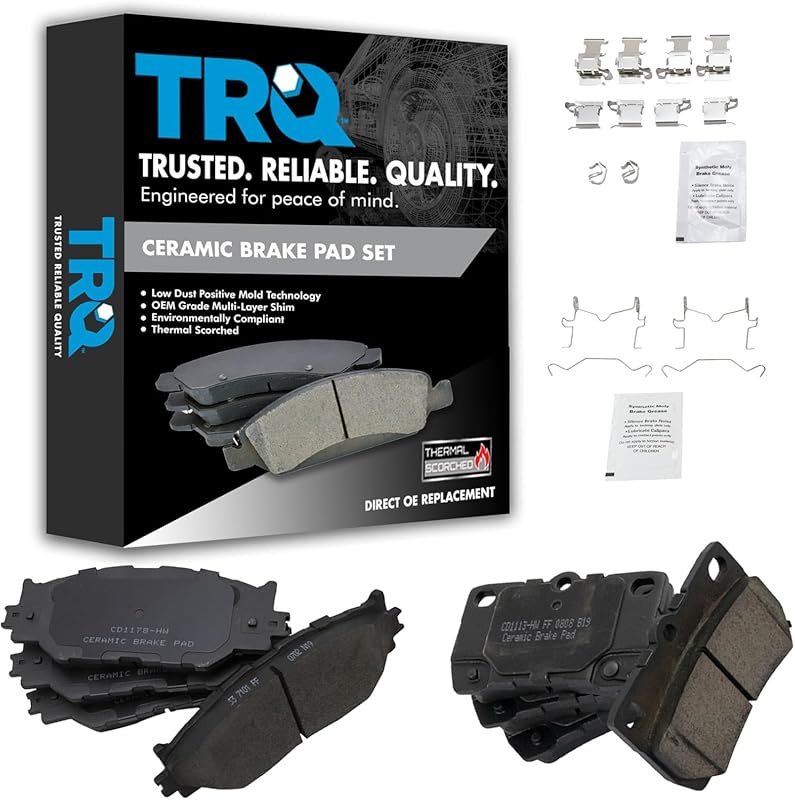 We recommend the TRQ set because it solves the common problem of sourcing correct pads for both axles on older vehicles. The ceramic material is ideal for daily driving, offering a perfect balance of smooth, quiet stops without the aggressive wear on rotors that some semi-metallic pads can cause. For the DIYer, having the included hardware and access to installation videos is a massive plus, saving you time and money on professional labor.