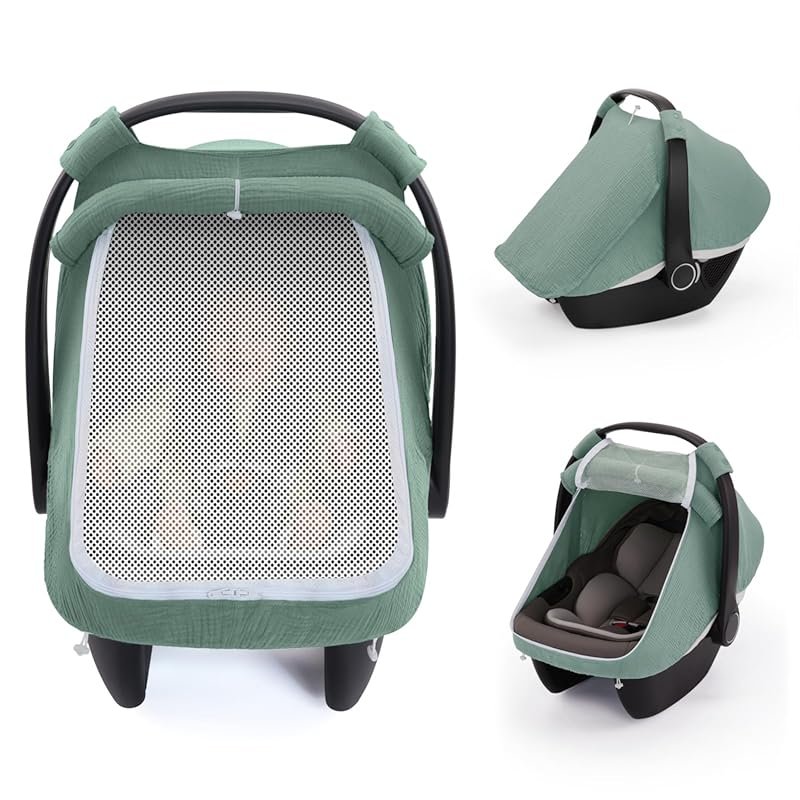 1. Blissful Diary Baby Car Seat Cover, Extra Large Breathable Muslin Cotton Mesh, Windproof Infant Canopy, Perfect Baby Gift