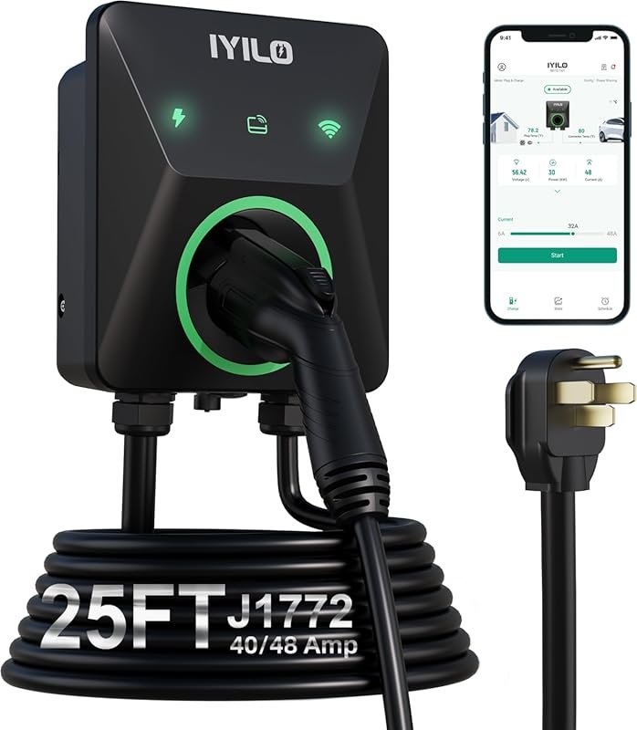 - Active Plug & Connector Overheat Protection: Worried about melted outlets? Unlike standard home ev chargers, IYILO level 2 EV Charger features advance Intelligent App & Smart Charging Control: The IYILO App features a smart, intuitive interface to set Time-of-Use (TOU) rates, track energy usage and c Perfect for daily use with outstanding durability and reliability.
