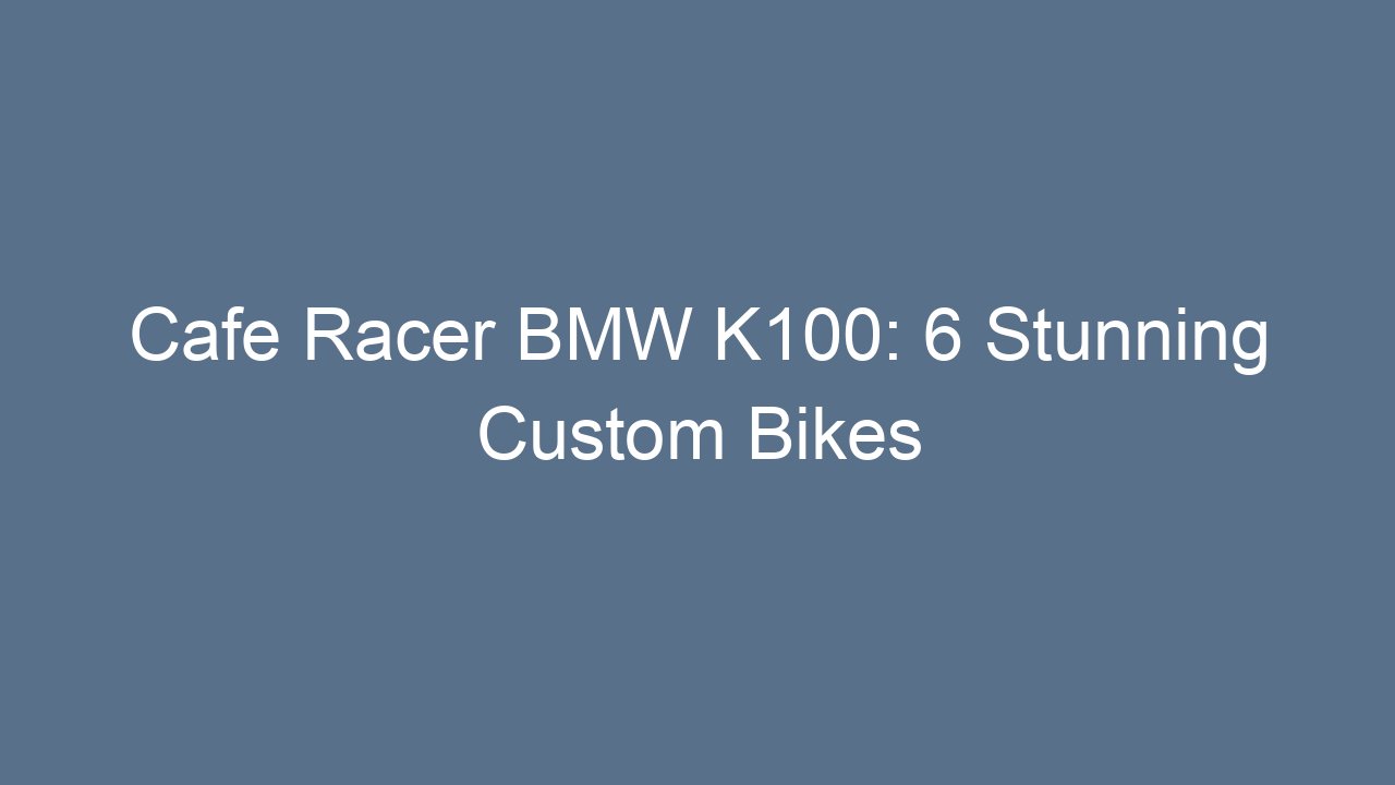- Discover 6 breathtaking cafe racer BMW K100 builds.