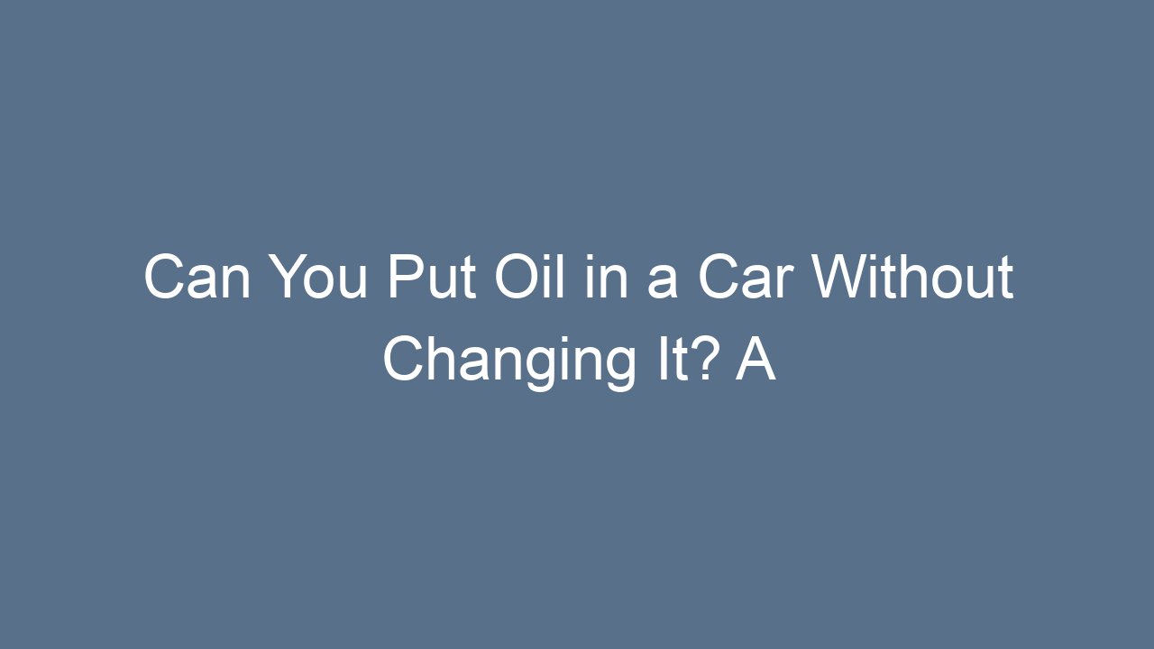 Can You Put Oil in a Car Without Changing It? A Complete Guide for Everyday Drivers