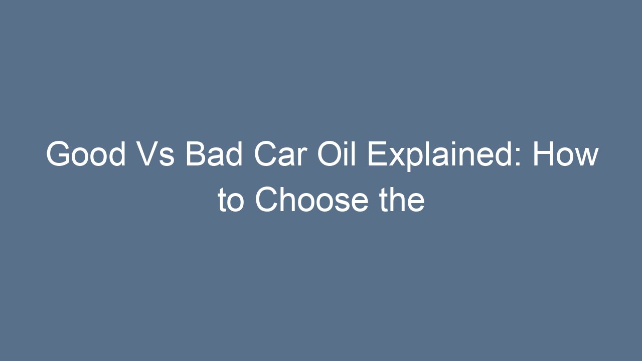 Good Vs Bad Car Oil Explained: How to Choose the Right Lubricant for Your Engine