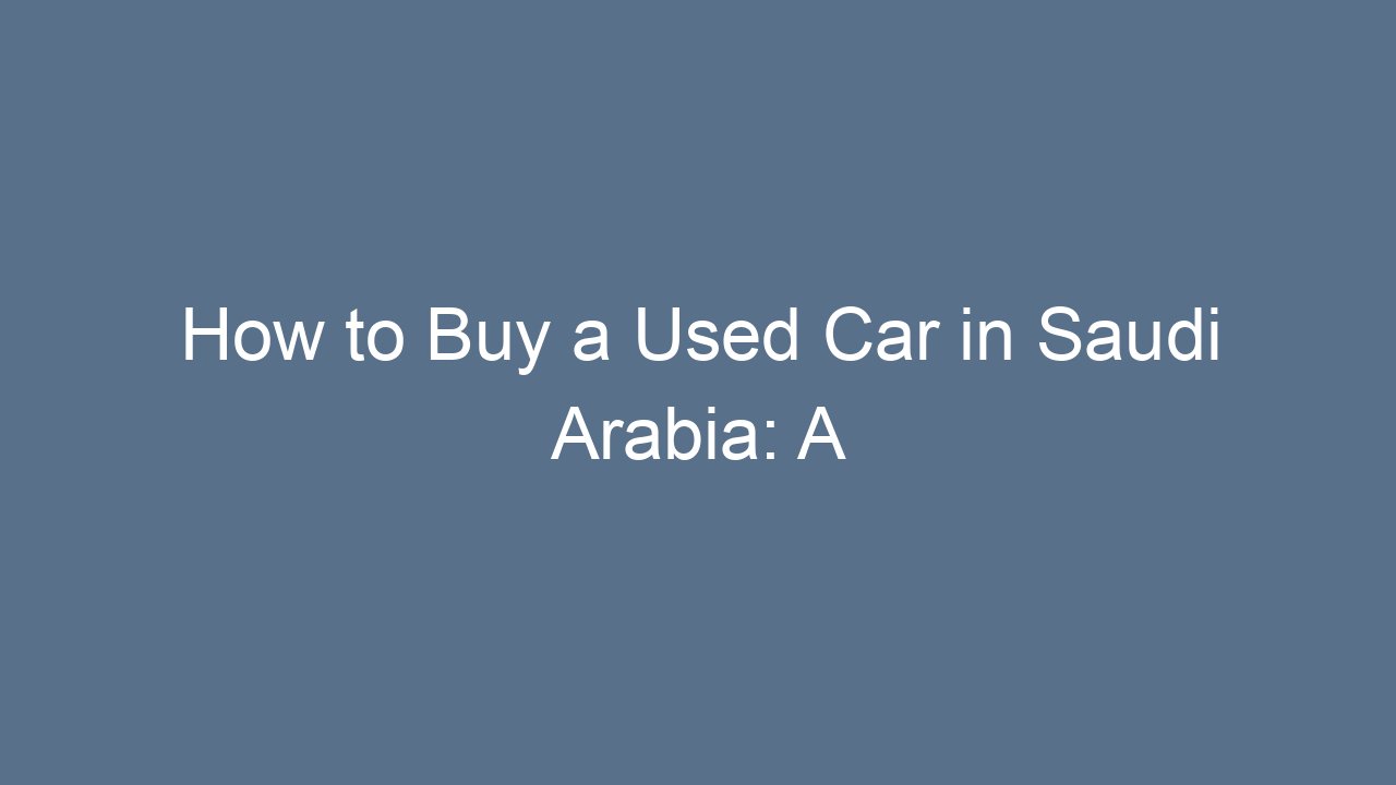 How to Buy a Used Car in Saudi Arabia: A Comprehensive Guide