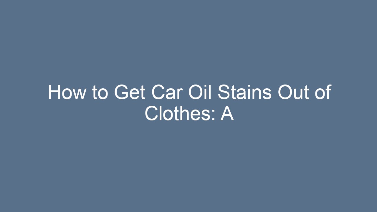 How to Get Car Oil Stains Out of Clothes: A Complete Step-by-Step Guide for Real-Life Results