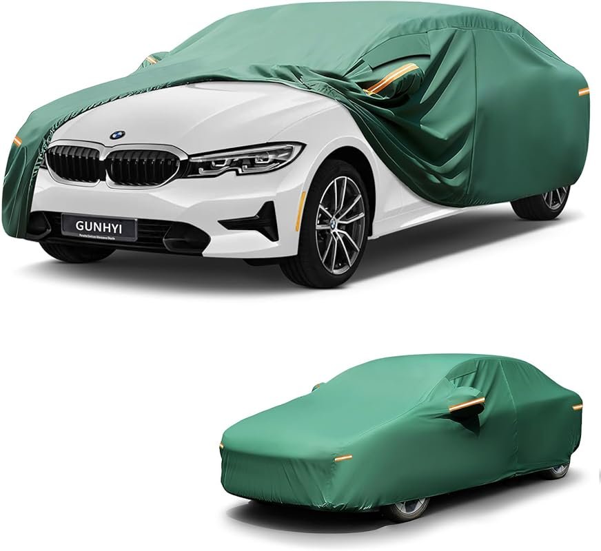 This 16-layer heavy duty car cover delivers complete protection for your sedan. It shields against winter snow, summer UV rays, and everything between. The spare windproof straps solve a common problem—regular straps that fail during storms.