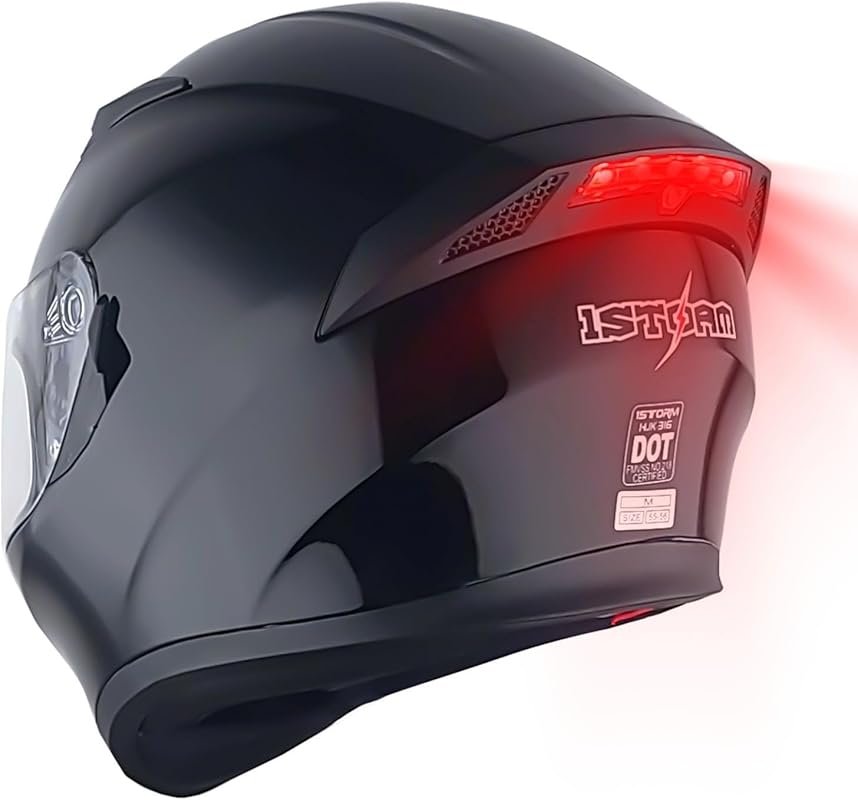 1. Storm Motorcycle Full Face Helmet with Dual Visor and LED Tail Light in Glossy Black
